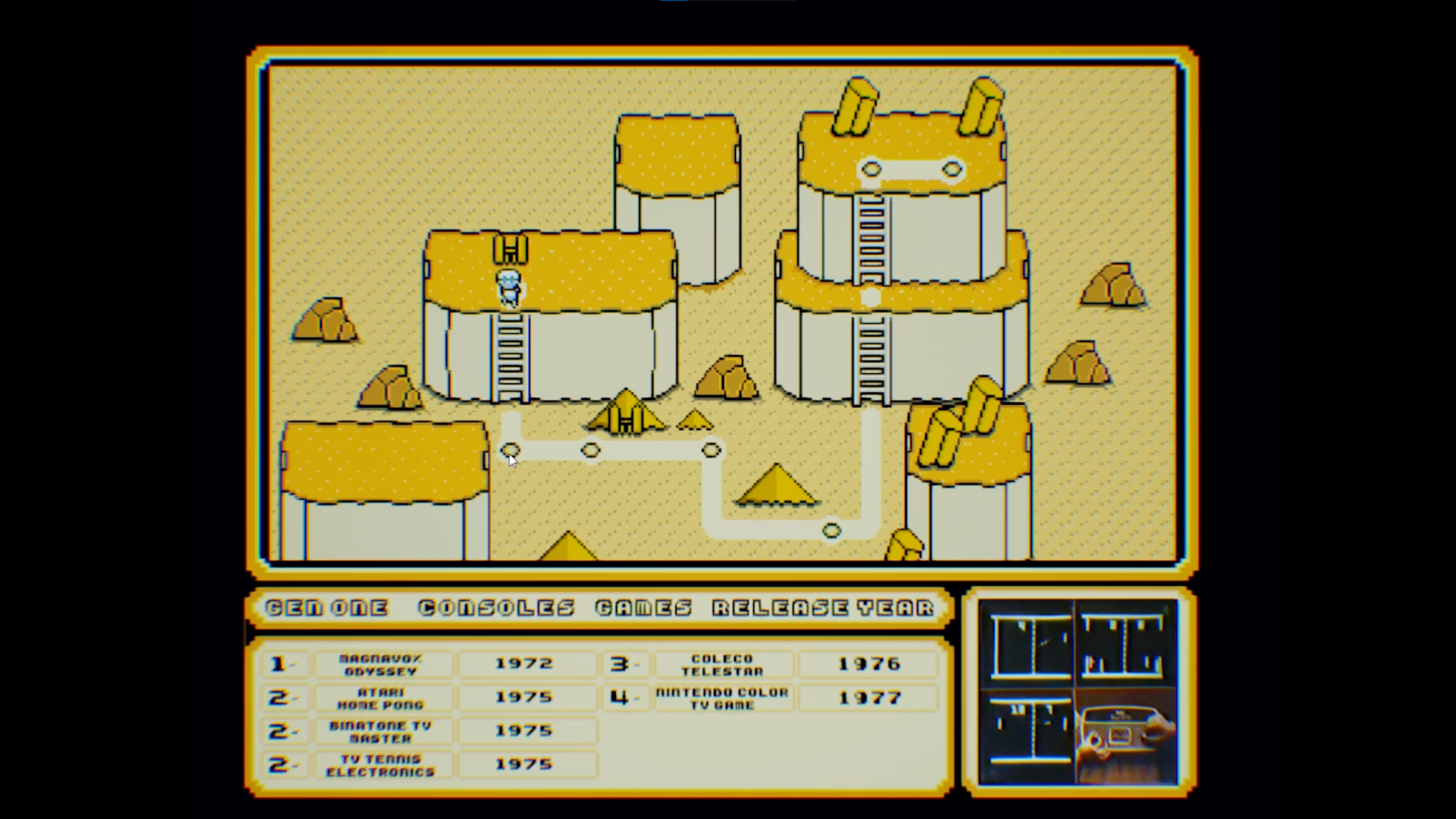 A playable history lesson by Tuakana Metuarau and the output of his Master’s Thesis. Each level was based on classic video games or video game genres of a certain era and the world map stored visualized game data from each console generation, such as highest selling games and number of consoles sold.